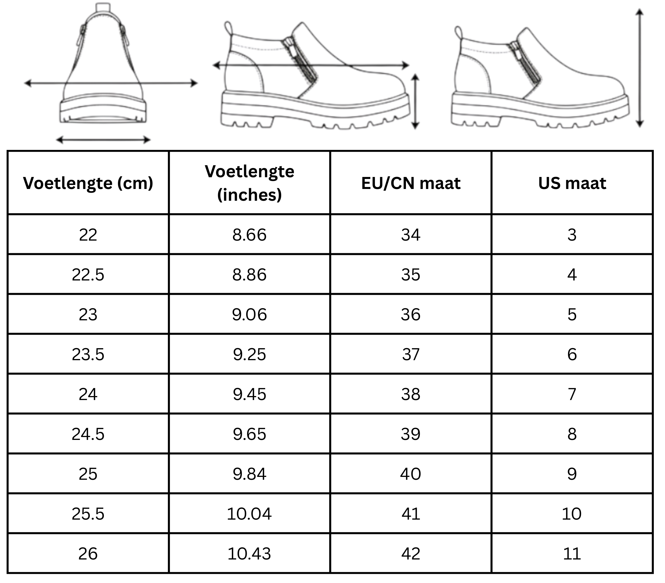 - Maten: 36, 37, 38, 39, 40, 41, 42, 43