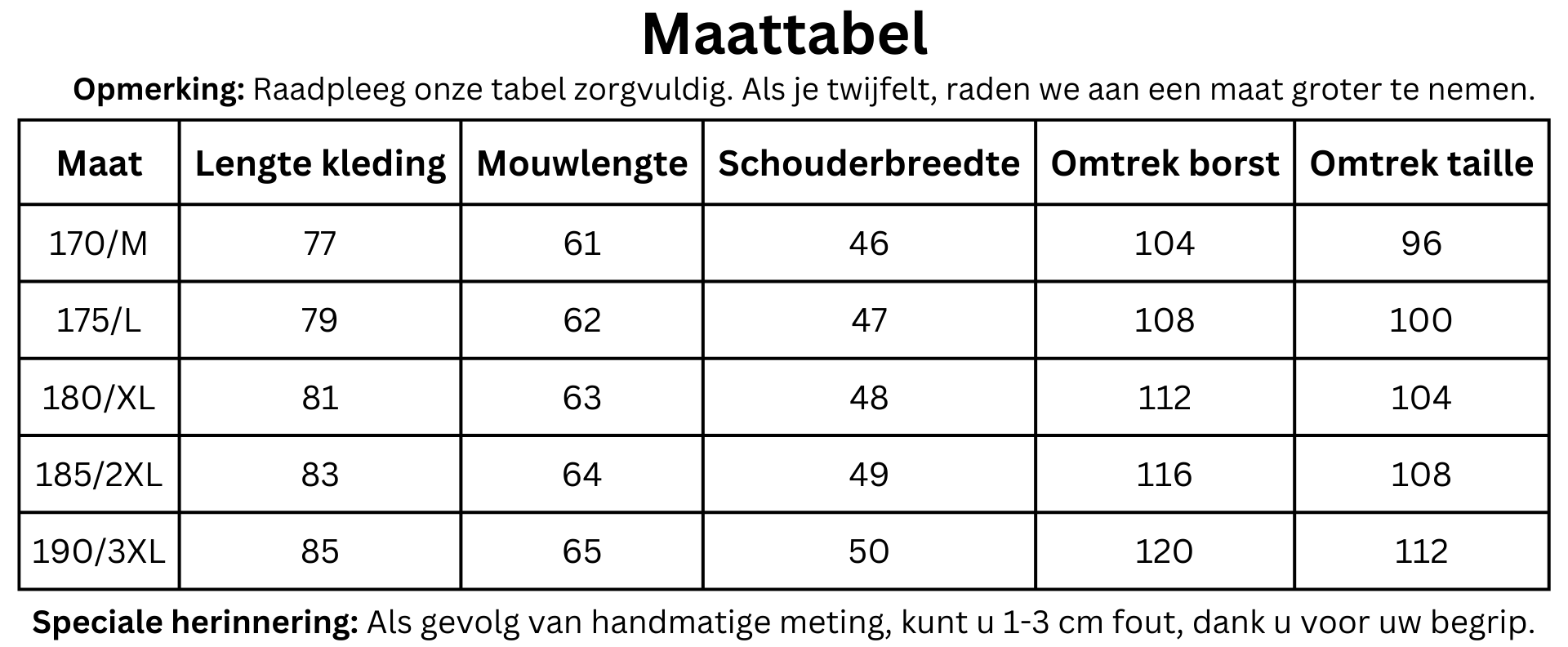 - Verfijnde pasvorm : Verkrijgbaar in verschillende maten (M tot XXXL) voor een comfortabele en aangename look.