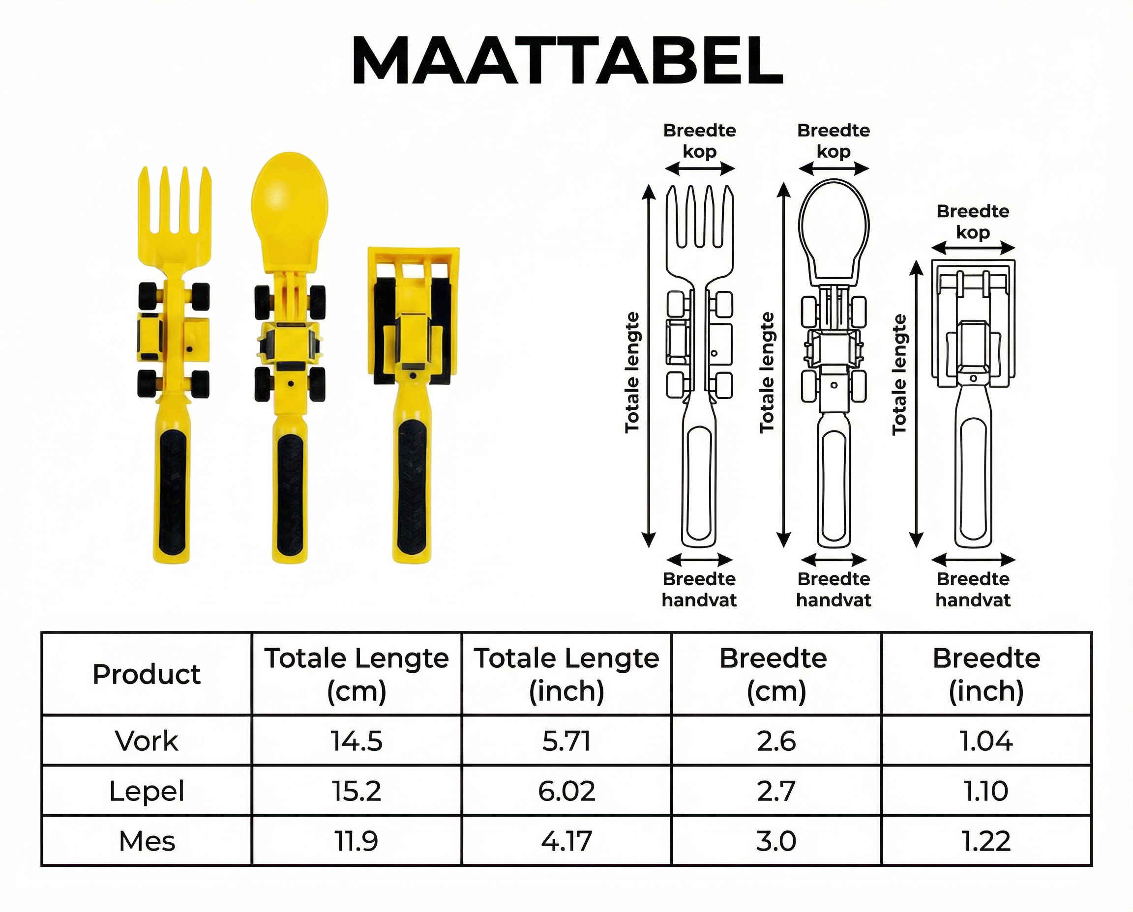 Ontgrendel de vreugde van gezond eten voor je kleintjes met EasySmullers™! Ontworpen om maaltijdtijd zowel leuk als voedzaam te maken, deze Voedselveilige Kinder Auto Bulldozer Graafmachine Schop Bord Mes Vork Lepel Set is perfect voor moeders die onafhankelijkheid en gezonde eetgewoonten bij hun kinderen willen bevorderen. Met zijn veilige, praktische ontwerp en kinesthetische leer voordelen, is het ook een ideaal cadeau van tantes, ooms, en meer aan de geliefde kinderen in hun leven.