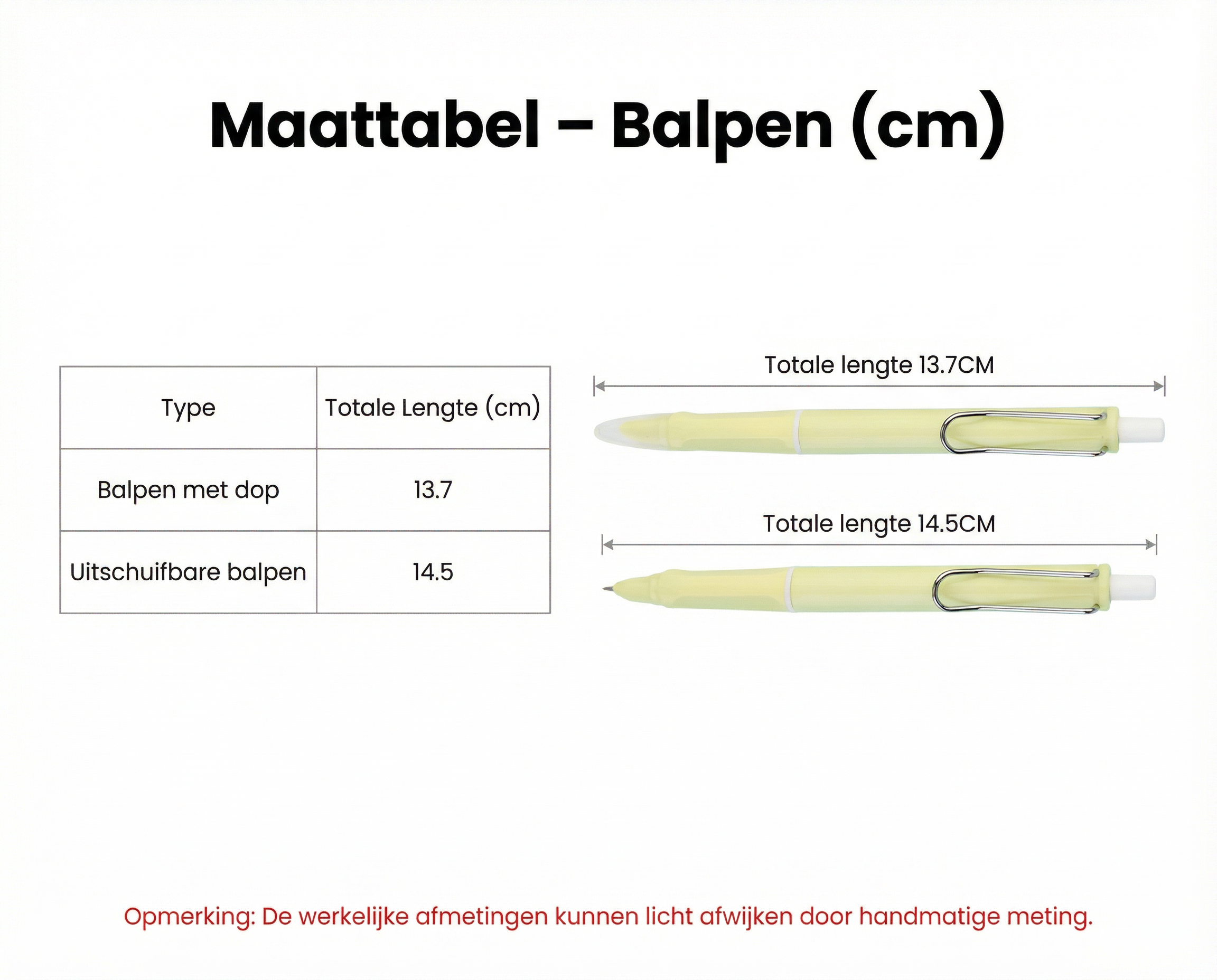 | Schrijfprecisie | 0,38 mm penpunt voor fijn schrijven | Gevarieerde punten |