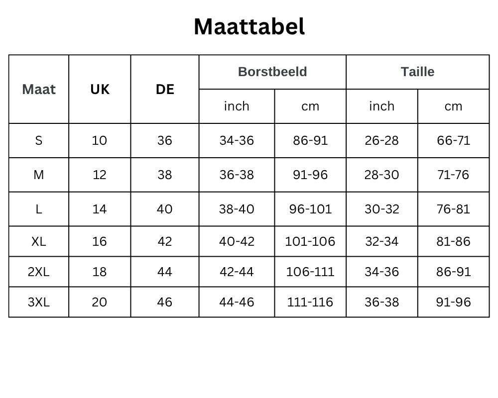 - Let op: populaire maten en kleuren raken snel uitverkocht. Wacht dus niet te lang met bestellen!