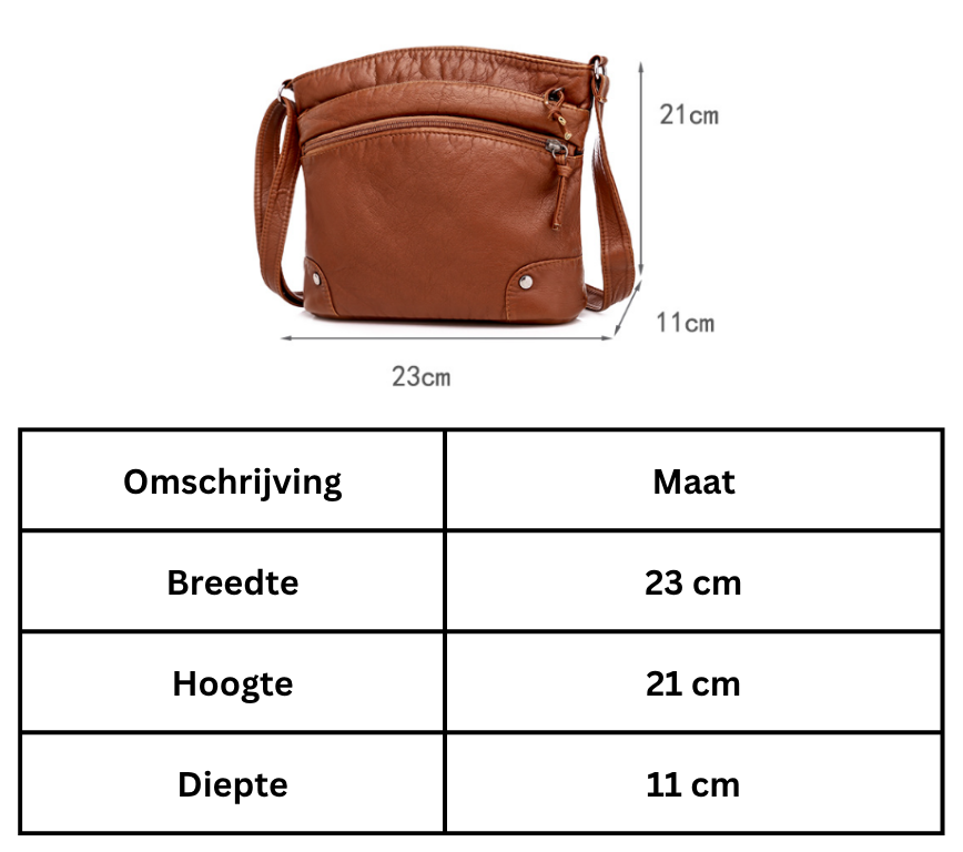 DDeze hoogwaardige tas van echt leer is kras-, vlek- en waterbestendig. De binnenkant is gevoerd met glad, vuilafstotend microsuède. Andere kenmerken zijn een klep met magneetsluiting en een verstelbare riemsluiting.