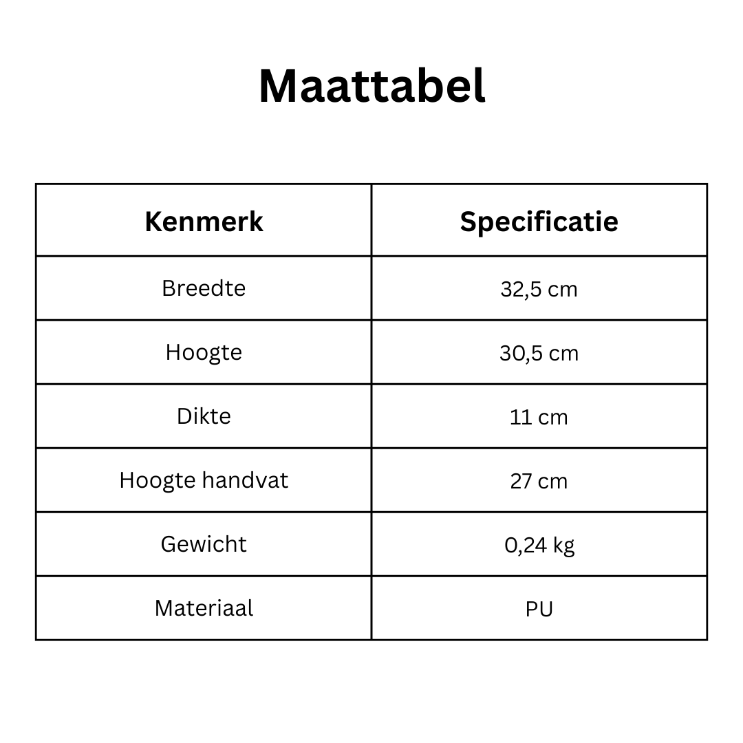 De afmetingen van 33 cm x 25,4 cm x 12,07 cm maken deze tas compact genoeg om overal mee naartoe te nemen, maar ruim genoeg voor al je dagelijkse benodigdheden.