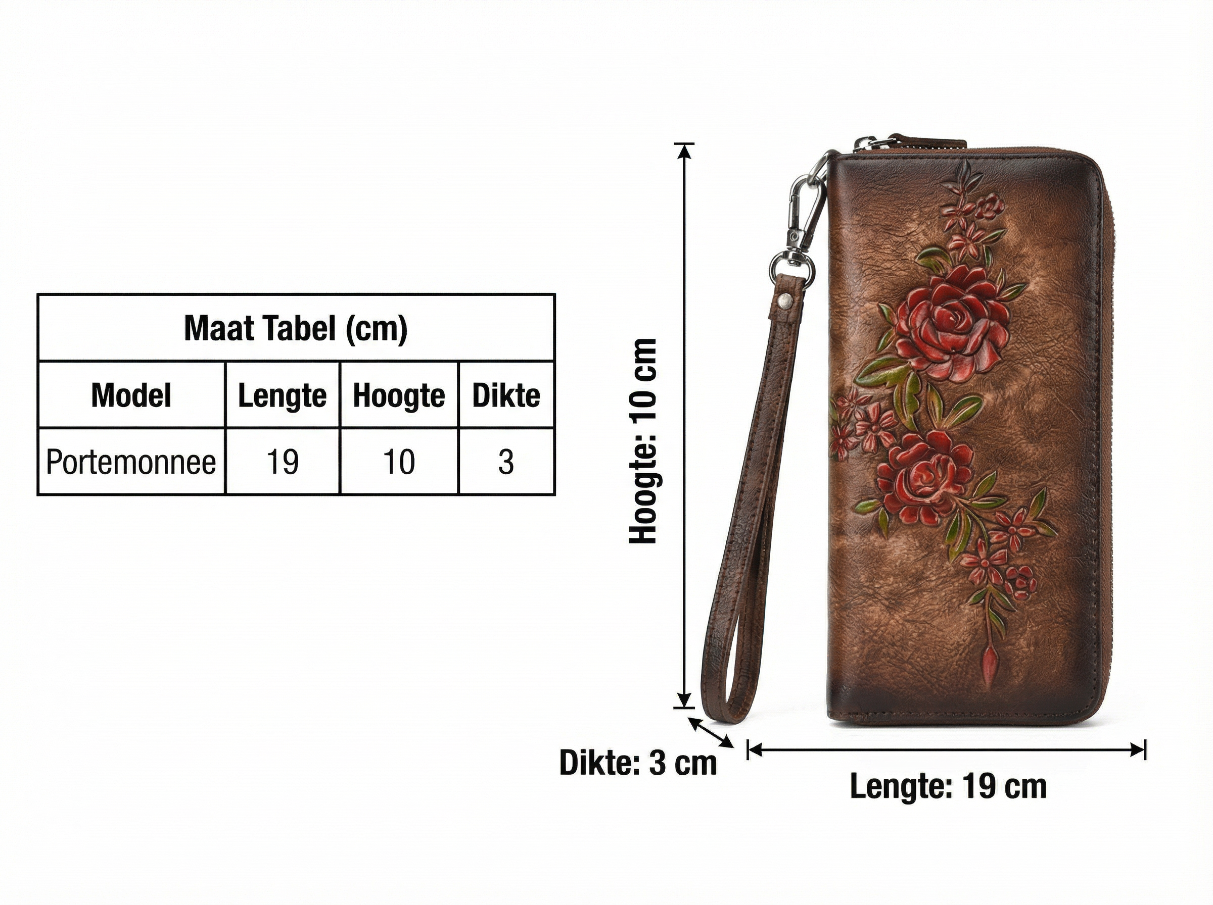 Lange Portemonnee van Echt Koeienleer met Bloemenreliëf