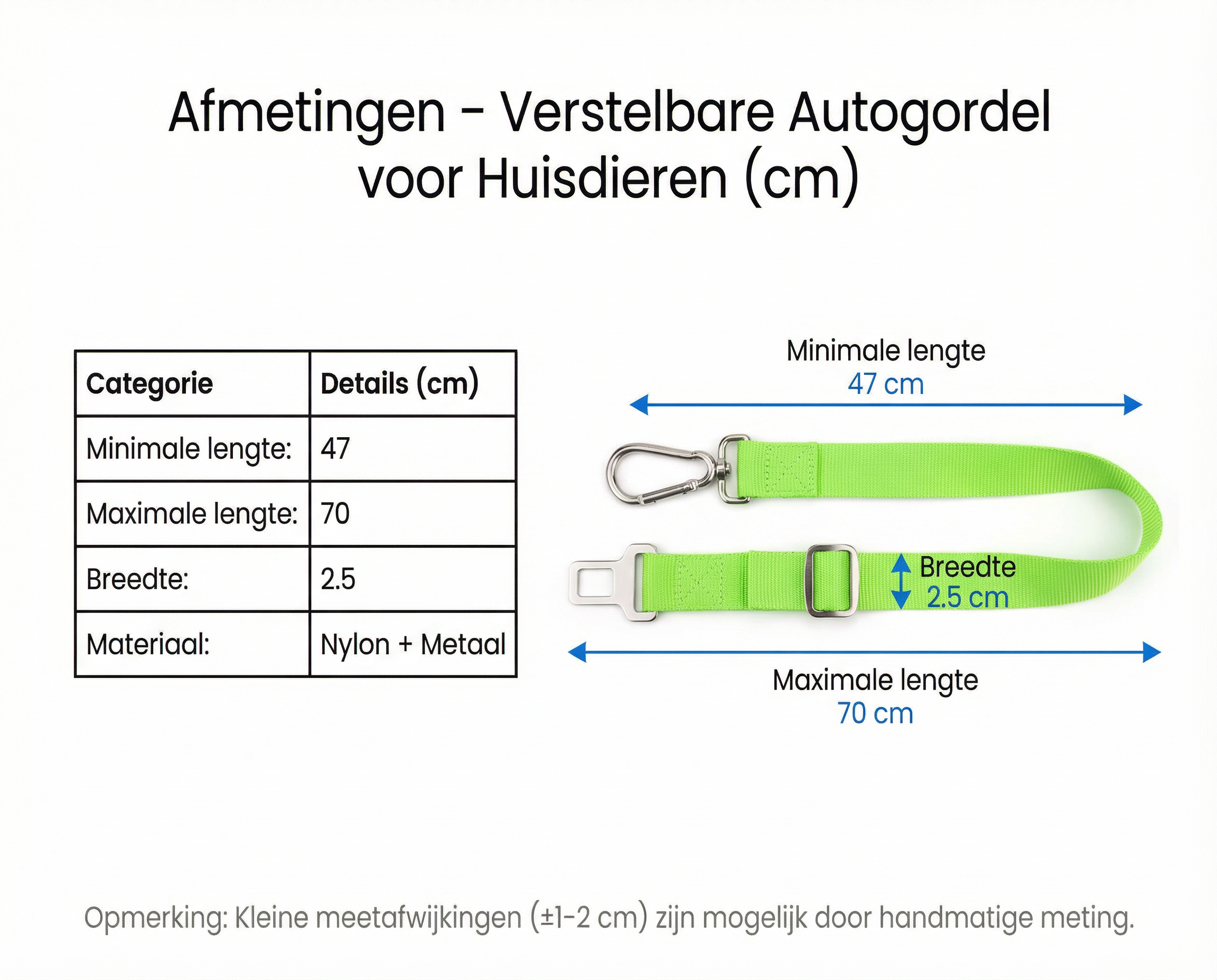 Met de Honden Veiligheidsgordel™ neem je jouw lieve Hondje veilig mee op reis. De Riem beschikt over een Elastische Band, waardoor jouw Hond genoeg beweegruimte heeft en tijdens ieder moment van remmen veilig kan blijven zitten. Je Hond zal jouw zicht in de achteruitkijkspiegel niet meer belemmeren, omdat je Hondje rustig op de achterbank kan blijven zitten. De Honden Veiligheidsgordel™ is volkomen Veilig en geeft jouw Hond een comfortabele reis.