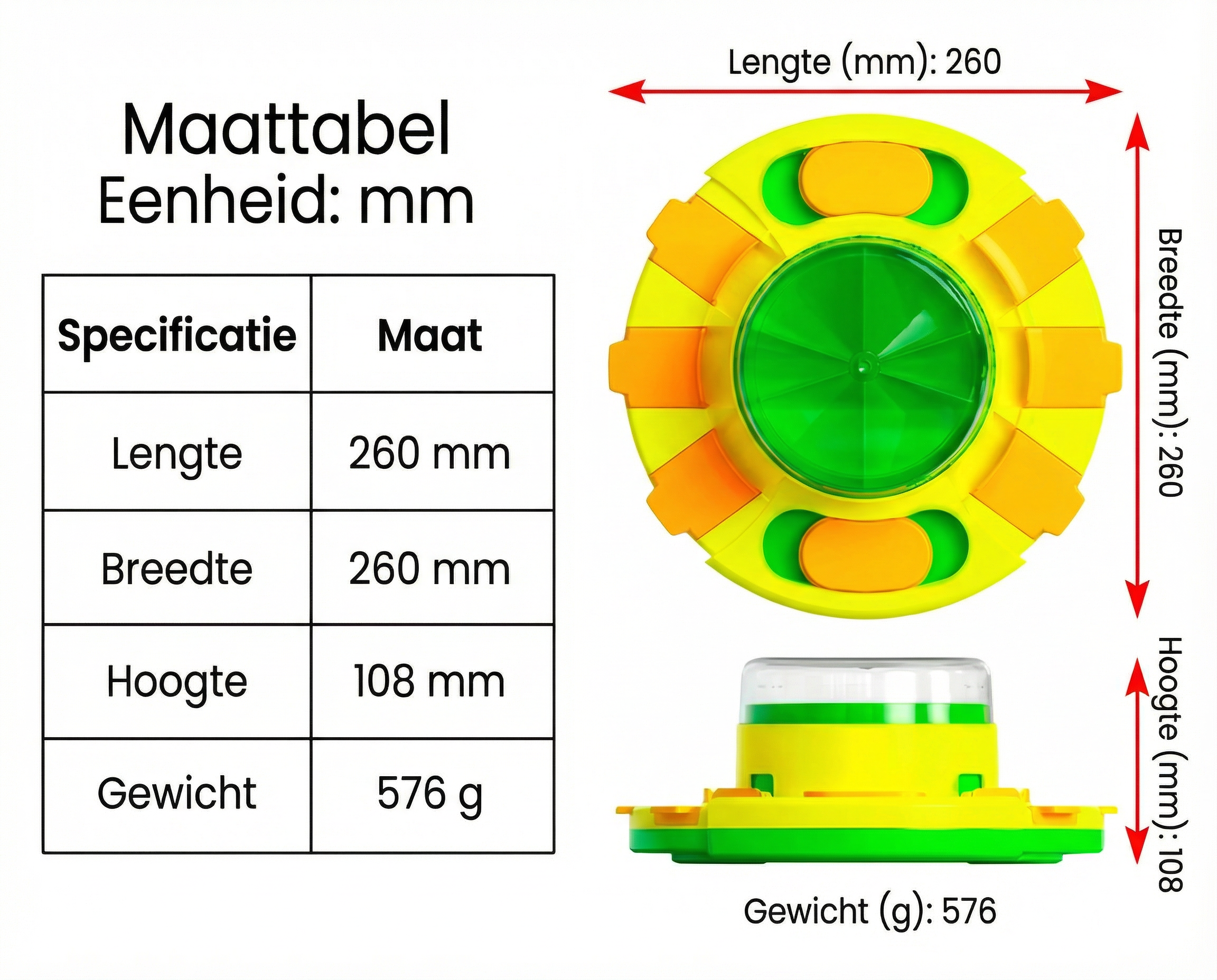 - Materiaal: diervriendelijk, BPA-vrij plastic