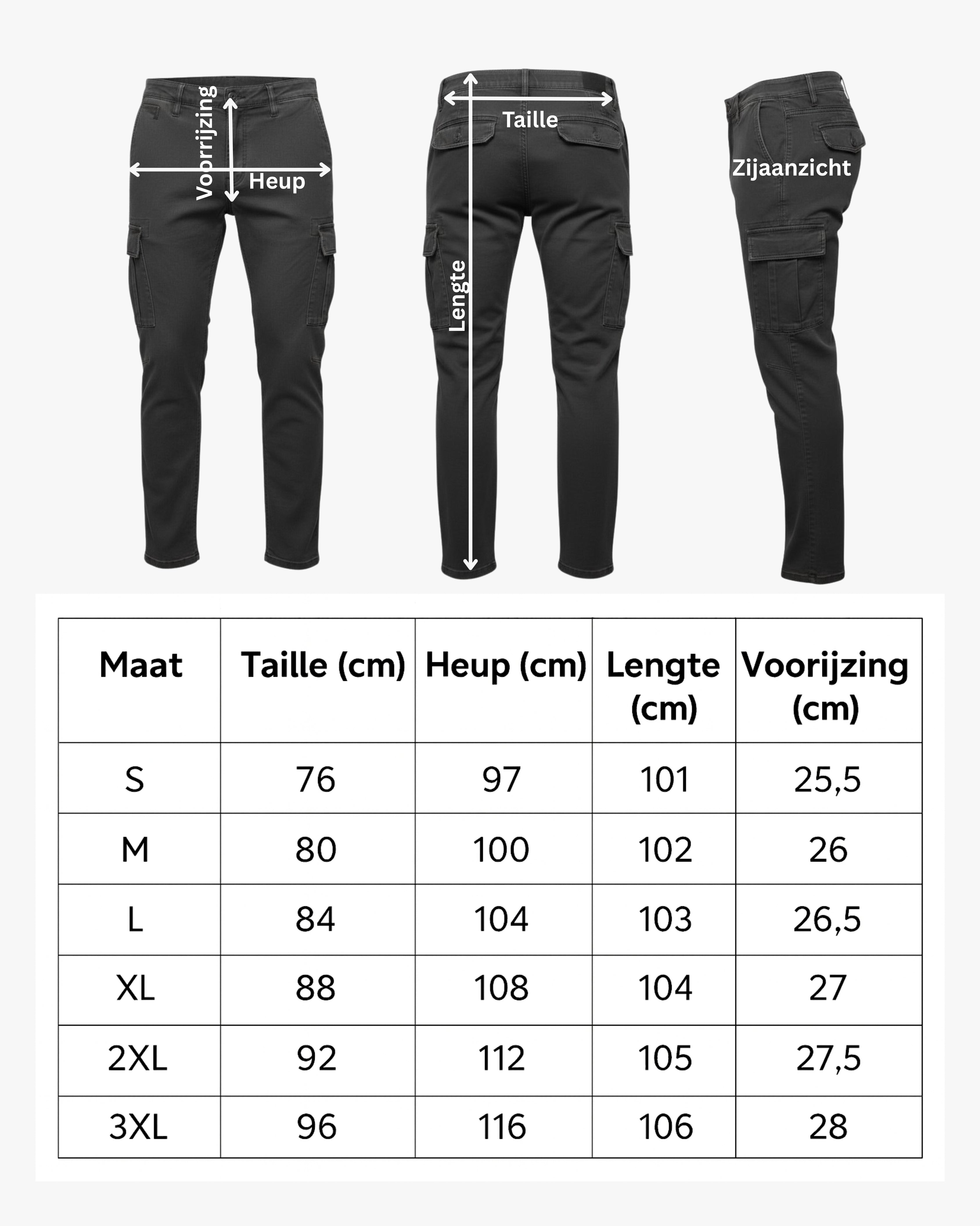 Wij stellen voor: Roberto™, het symbool van comfort en veelzijdigheid in casual cargo-broeken. Ontworpen voor degenen die functionaliteit en mode waarderen, brengt dit product een moderne twist aan het tijdloze cargo-ontwerp.