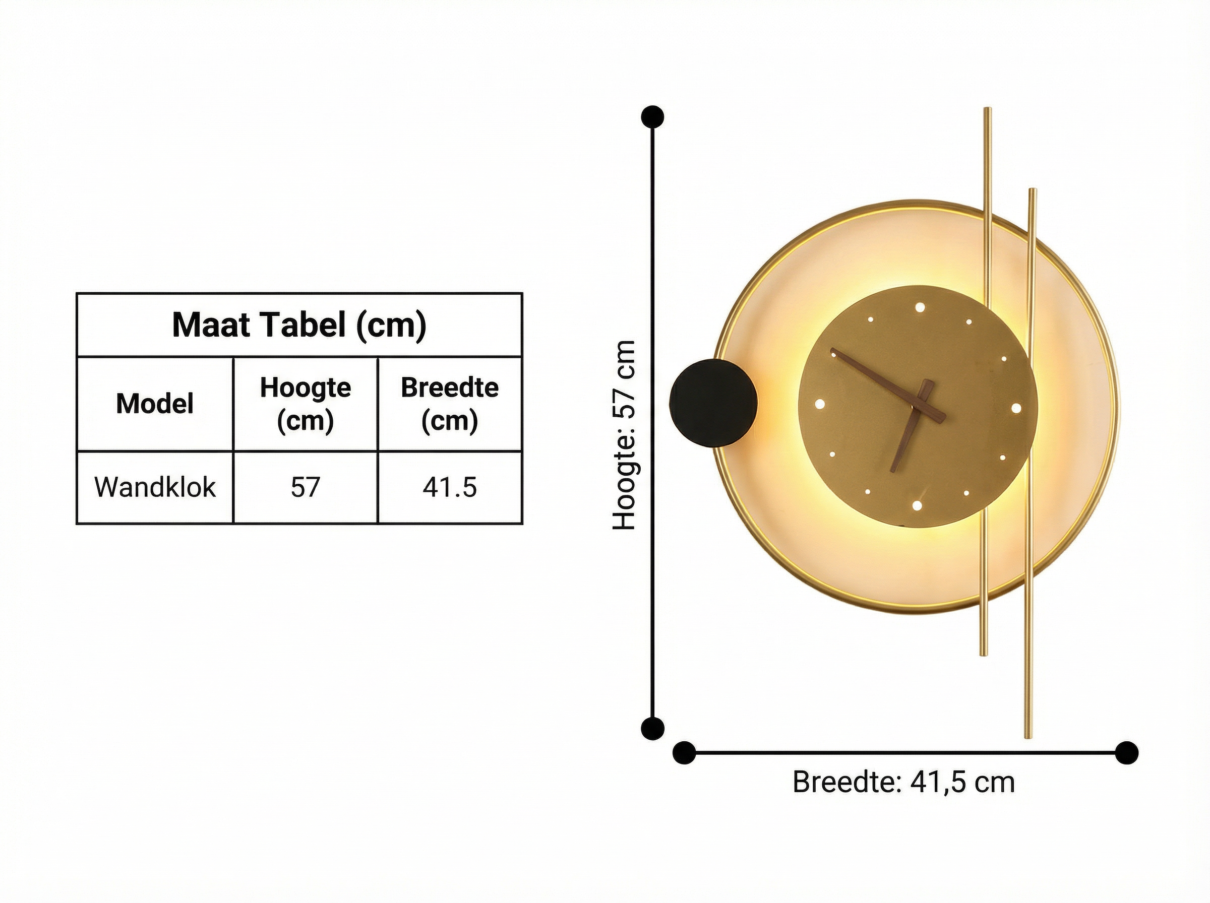 De Zeitkunst Wandklok van Luminoir is een stijlvolle wandklok die tevens als wandlamp fungeert. Deze klok heeft een kunstzinnig ontwerp dat zowel functioneel als stijlvol is. Verkrijgbaar in twee elegante kleuren - goud en zwart - en met een royale afmeting van 57 cm x 41,5 cm, is deze klok de perfecte manier om een vleugje verfijning aan uw ruimte toe te voegen.
